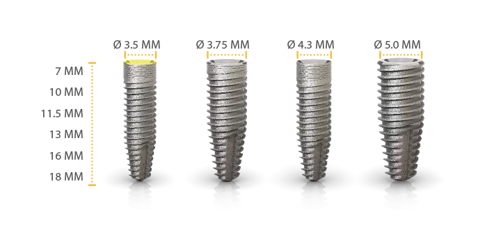 Los implantes NUVO™ se han diseñado ofreciendo una gama completa de diámetros y longitudes.