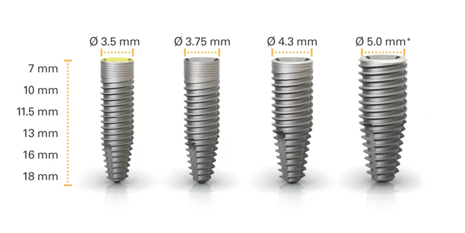 Los implantes NUVO™ se han diseñado ofreciendo una gama completa de diámetros y longitudes.