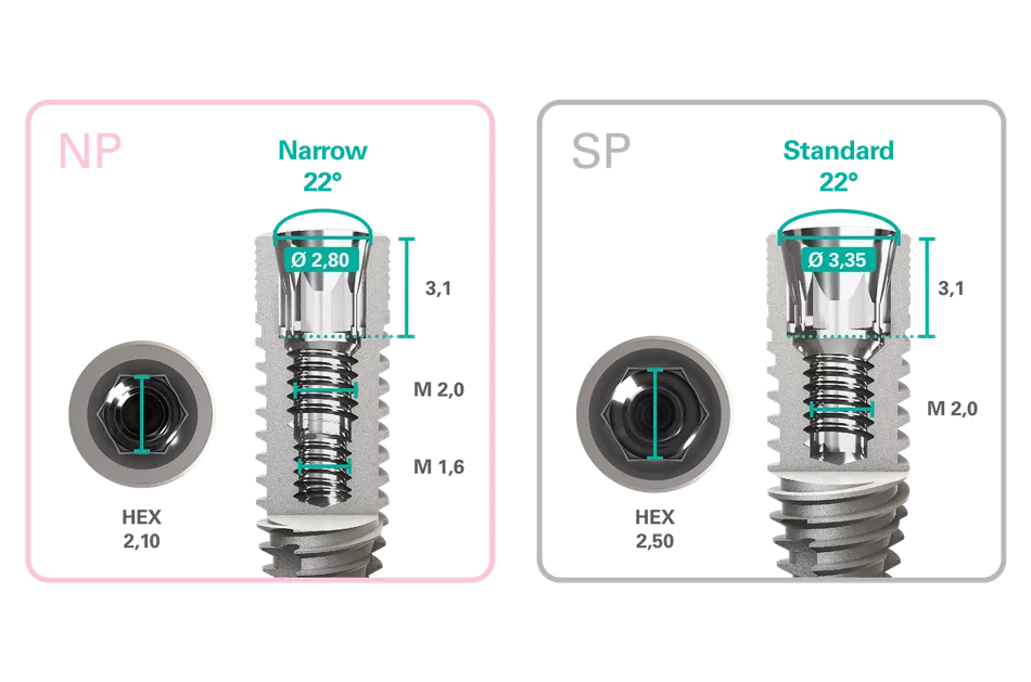 NUVO™ ConicalFIT™ oferă o potrivire sigură între bont și implant, cu o conexiune conică cu unghi de 22 de grade, precum și conceptul platform-switching. Acesta combină angajarea antirotațională cu indexare care permite poziționarea adecvată a bontului.